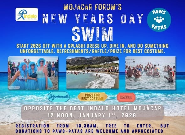 Jan 1, 2026-unique New Year Pet Swim Party. Held at Vent del Bancal Beach, Almería.Organized by PAWS PATAS (animal rescue). Invites pet parents & fur babies to dive.Pet parents can use their creativity to dress their pets in swimwear. On-site “Best Costume Award” with mysterious prizes! After swimming, organizers serve refreshments, snacks.Pet parents interact with each other and fur babies. Voluntarily donate to animal rescue cause.Participation is free! Registration starts at 10:30 AM, and the swim party officially begins at 12:00 PM.Energetic New Year event chases winter chill. It spreads care for animals.